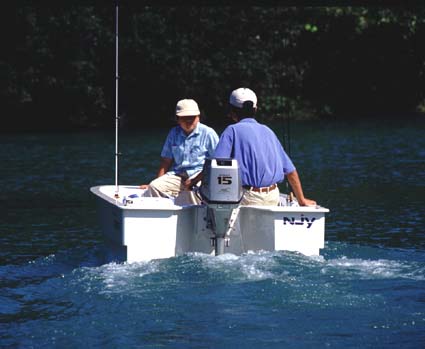 ■船体はダブルデッキ採用の高剛性の船体。チョッピーな波も楽々乗り越える走行安定性。そしてもちろん浮力体内蔵の完全不沈構造です。