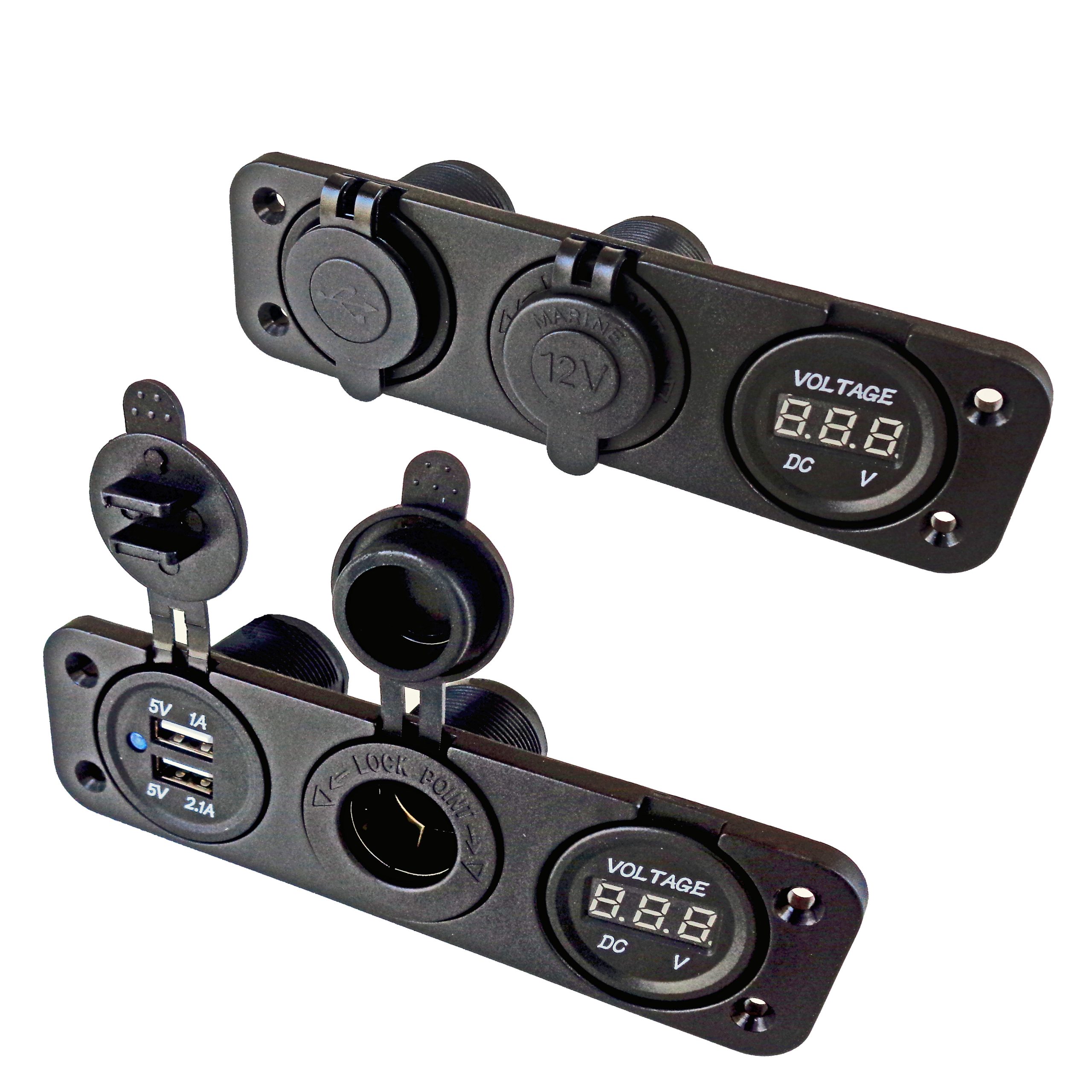 ●USBソケットと、シガレットライター型ソケット・デジタル12V電圧計を取付けできる共通プレートです。